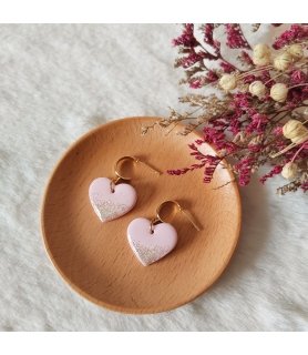 22,00 €Boucles d'oreilles Maeko en argile polymère vieux rose et à paillettes dorées, acier inoxydable.