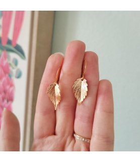 18,00 €Adoptez les boucles d'oreilles feuilles, les feuilles sont en laiton doré à l'or fin 18K et les dormeuses en acier inoxydable doré.