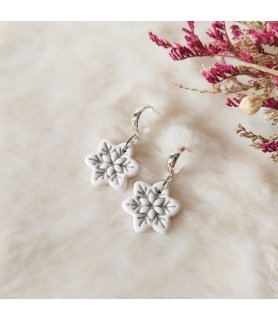 20,00 €Boucles d'oreilles Sapins version argentée de couleur blanc et flocons irisés, pour mettre une touche élégante à son look de Noël. Les clous sont en acier inox.
