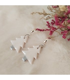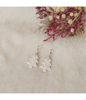 Boucles d'oreilles Sapins de couleur blanc à paillettes irisées, pour mettre une touche élégante à son look de Noël. Les clous sont en acier inox .