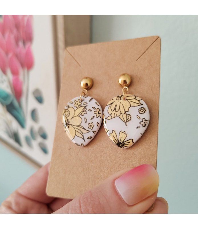 Adoptez ces boucles d'oreilles "Mariko" en forme de goutte aux motifs fleurs , parfaites pour accompagner vos tenues du quotidien ou sublimer une occasion spéciale.