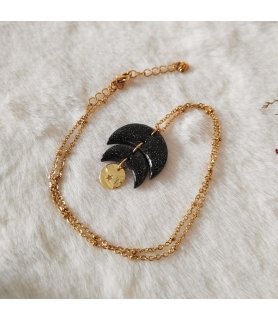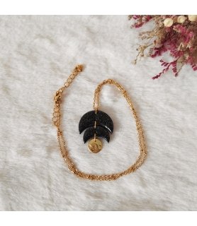 Adoptez le collier lunaire "Sohalia" noir pailleté, une touche élégante et poétique, pour illuminer votre tenue et votre journée.