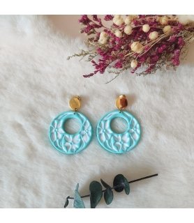 Boucles d'oreilles rondes "Maruka" bleu turquoise – Argile polymère et fleurs