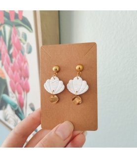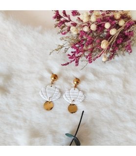 Boucles d'oreilles "Miko" coquillage blanc texturé - Acier inox doré