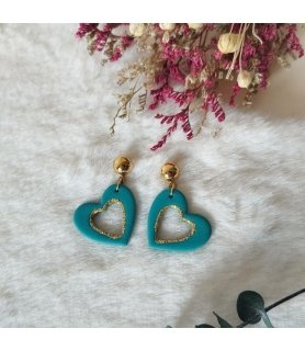 Adoptez ces boucles d'oreilles "Klee" bleu canard, un coeur évidé avec un soupçon de paillettes pour un côté chic et élégant, parfait pour accompagner vos tenues du quotidien ou sublimer une occasion spéciale.