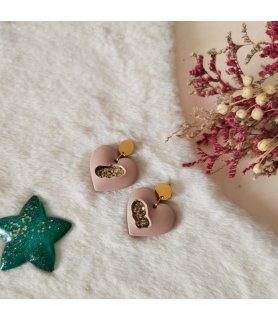 Adoptez ces boucles d'oreilles "Yowakute Tsuyoi" qui veut dire Faible et Fort à la fois en japonais, malgré qu'il soit cabossé le coeur reste rempli de paillettes. Des boucles d'oreilles légères, confortables et aussi hypoallergéniques.