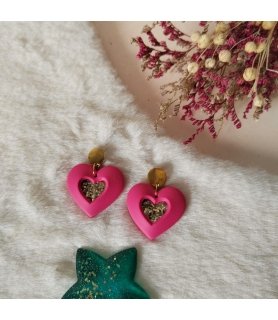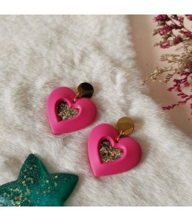 Adoptez ces boucles d'oreilles "Kokoro no Hikari" qui veut dire Lumière du Coeur en japonais, en argile polymère et acier inox doré.