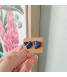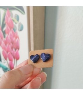 Puces d'oreilles coeurs étoilés "Rina" galaxie – Argile polymère, résine et acier inox