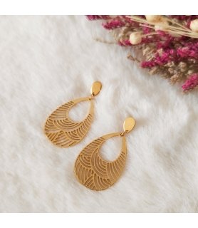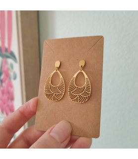 Boucles d'oreilles gouttes motifs japonisant en acier inox doré, boucles légères