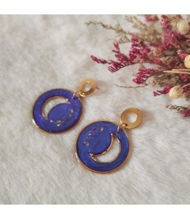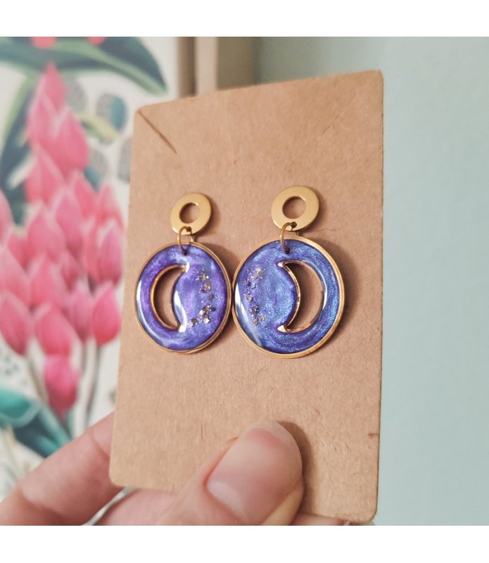 Boucles d'oreilles "Yozora no Tsuki" violette en résine et paillettes - Clous en acier inox doré